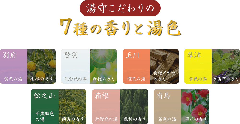 調香師が監修した香り、また温泉地をイメージした湯色は、さらに温泉気分を高めます。