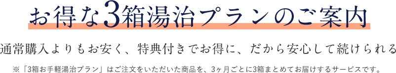 ・3箱お手軽湯治プランは3ヵ月ごとに3箱ずつお届けするプランでございます。